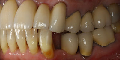 This is an advanced set of dental procedures best carried out by prosthodontists or restorative dentists. Full mouth rehabilitation is a term used in dentistry for rebuilding teeth and supporting structures after decay and gum disease has been stabilised. Full mouth rehabilitation is only required if your bite has collapsed or you have multiple missing or heavily filled teeth. Implants, crown and bridgework and/or partial or full dentures can be used to restore your bite close to its original height. Temporary restorations or dentures are used to get an idea of what the final result will be like before having the final restorations made. Temporary restorations also allow you to have input into your appearance and smile giving you the opportunity to show friends and family what your teeth may look like when the work is complete.